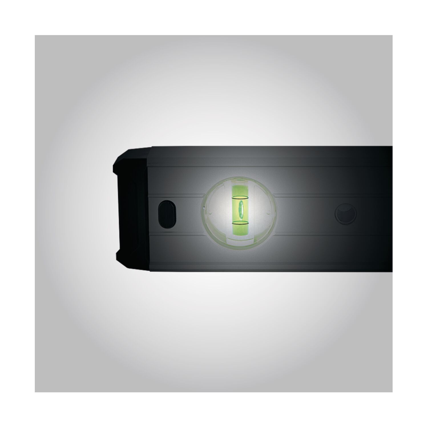 Μια οριζόντια και δύο κάθετα φιαλίδια με φωτισμό εγγυώνται βέλτιστη αναγνωσιμότητα Λειτουργία Hold για αποθήκευση της τιμής μέτρησης Κατασκευασμένο από αλουμίνιο Ανθεκτικό στη σκόνη και στο νερό Με ισχυρούς μαγνήτες για ασφαλή στερέωση με ιμάντες Αυτόματη απενεργοποίηση μετά από 10 λεπτά Ιδανικό για ακριβείς μετρήσεις σε οικοδομικές κατασκευές και ξυλουργικές εργασίες