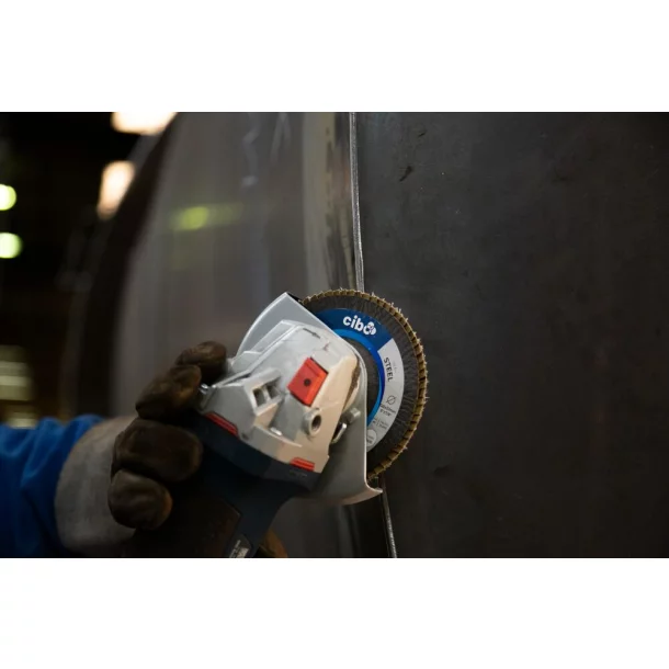 Τα Flap Discs της cibo κατασκευάζονται στo Βέλγιο με υψηλές προδιαγραφές ποιότητας .Ο χαλύβδινος δίσκος Industrial προσφέρει τους ίδιους λειαντικούς κόκκους υψηλής ποιότητας με την έκδοση inox, αλλά διαθέτει ελαφρώς πιο άκαμπτη επένδυση από πολυβαμβάκι . Αυτή η βάση αναπτύχθηκε ειδικά για δίσκους με πτερύγια και έχει σχεδόν διπλασιάσει τη διάρκεια ζωής σε σύγκριση με έναν παραδοσιακό δίσκο με πτερύγια. Η επένδυση από πολυβαμβάκι είναι στα καλύτερά της όταν χρησιμοποιείται σε εφαρμογές ελαφρώς υψηλότερης πίεσης και εξασφαλίζει ένα σταθερό λειαντικό σχέδιο . Αυτό έχει ως αποτέλεσμα τη συνεχή λείανση από την αρχή μέχρι το τέλος.