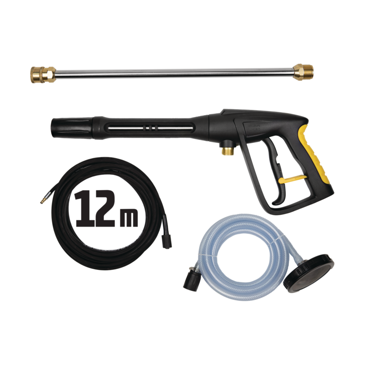 Μεταλλική κάνη Μπεκ υψηλής πίεσης (0 °, 15 °, 25 °, 40 °) Μπεκ αναρρόφησης απορρυπαντικού Μεταλλικό πιστόλι Ενισχυμένος σωλήνας υψηλής πίεσης 12m