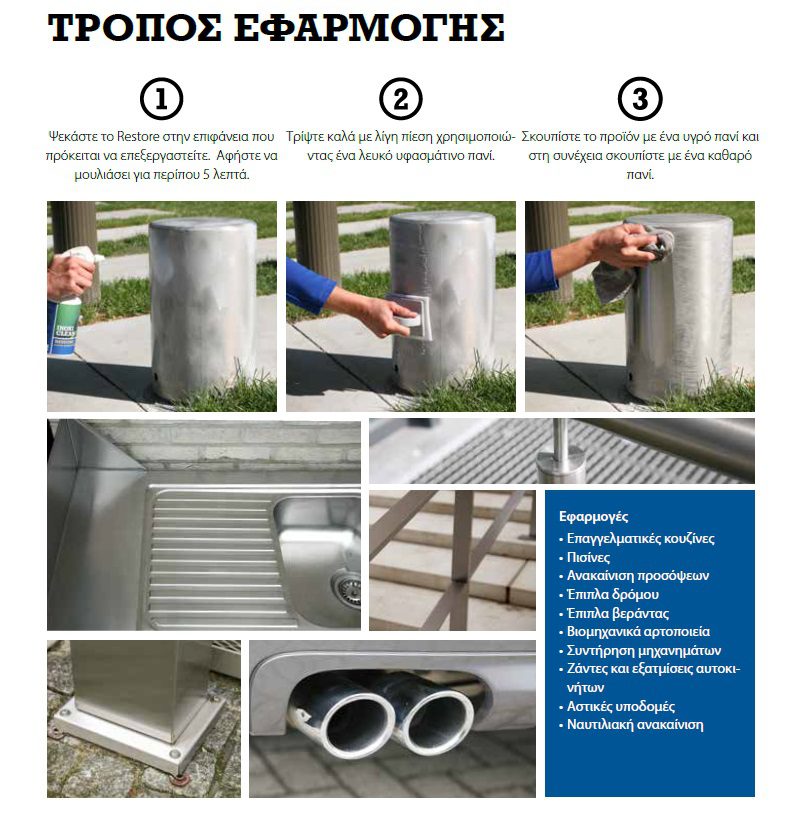 Αφαιρεί τη σκουριά, τη βρωμιά και τα λίπη από ανοξείδωτο χάλυβα, αλου-