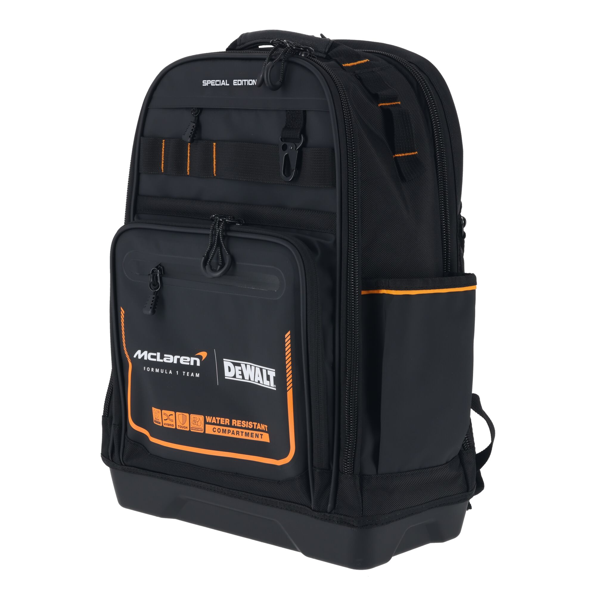 - Κατασκευή από ανθεκτικά υλικά – Αντιμετωπίστε τις απαιτήσεις του εργοταξίου με ανθεκτικό ύφασμα 1680 Denier και ανθεκτική στη βρωμιά ταρπολίνη. Βελτιστοποιημένη οργάνωση – Οργανώστε τα εργαλεία σας με 43 τσέπες, συμπεριλαμβανομένης μιας ξεχωριστής θήκης για δράπανο και μπαταρίες. Προστασία φορητού υπολογιστή – Προστατεύστε τις ηλεκτρονικές σας συσκευές σε απαιτητικά εργοτάξια με ξεχωριστή θήκη για laptop. Μεγάλος αποθηκευτικός χώρος εργαλείων – Διατηρήστε τα αντικείμενά σας οργανωμένα με ειδική θήκη για μπουκάλι και μοναδικό χώρο για μακριά εργαλεία. Εύκολη πρόσβαση στα εργαλεία – Αποκτήστε γρήγορη πρόσβαση στα εργαλεία σας με την αναδιπλούμενη κύρια θήκη. Υψηλή ορατότητα – Βρείτε εύκολα τα εργαλεία σας με το εσωτερικό ύφασμα υψηλής ορατότητας σε κίτρινο χρώμα. Γρήγορο κλείσιμο με φερμουάρ – Αποθηκεύστε και ανακτήστε τα εργαλεία σας γρήγορα, ακόμη και φορώντας γάντια, με την εργονομική λαβή U-shaped του φερμουάρ. Σχεδιασμένο για άνεση – Μεταφέρετε τα εργαλεία σας άνετα με το εργονομικό, επενδεδυμένο σύστημα υποστήριξης πλάτης. Επιπλέον αποθηκευτικός χώρος – Βρείτε τα απαραίτητα γρήγορα με την ειδική κλιπ ταινίας, το μεταλλικό καραμπίνερ και την αλυσίδα πρόσδεσης.
